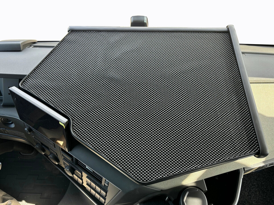 Die 7 mm hohe Kante und die Antirutschmatte sorgen dafür, dass Ihr Computer oder Telefon während der gesamten Fahrt sicher liegen bleiben.