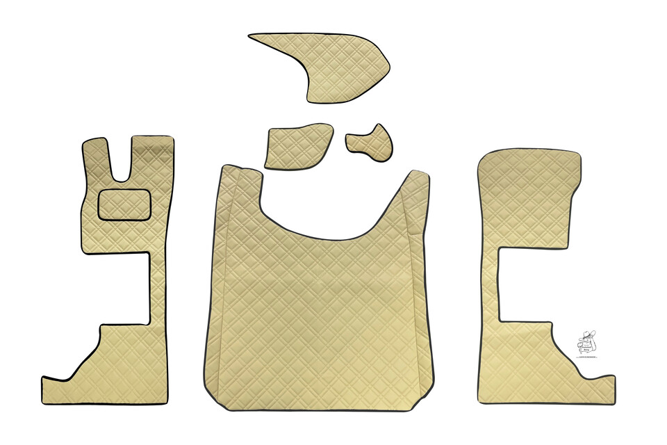 Cremefarbenes 6-teiliges Bodenset für LKW mit doppelt gewaffeltem Muster und schwarzer Einfassung.