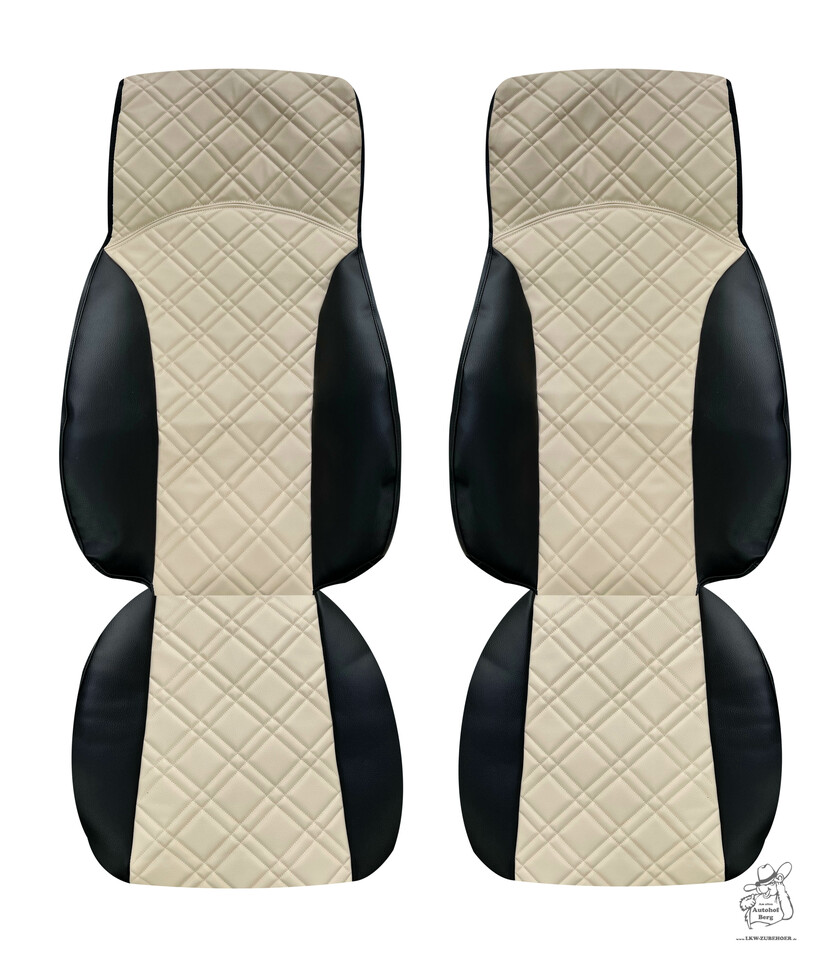 Fahrersitzbezug hat einen Ausschnitt für Gurt und Armlehne rechts (zur Mittelkonsole). Beifahrersitzbezug hat KEINEN Ausschnitt für Gurt, nur einen Ausschnitt für Armlehne links (zur Mittelkonsole).