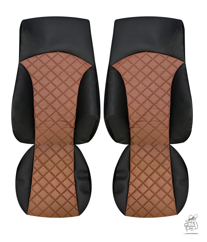 Beide Sitzbezüge haben Ausschnitte für Armlehnen. Fahrersitz hat einen Ausschnitt für Gurt, Beifahrersitz ohne Ausschnitt.