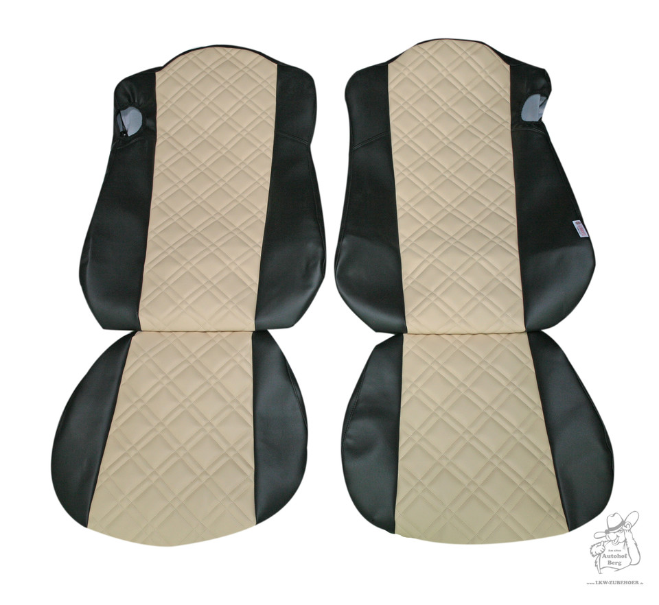 2 Sitzbezüge, außen glattes schwarzes und innen gewaffeltes Kunstleder