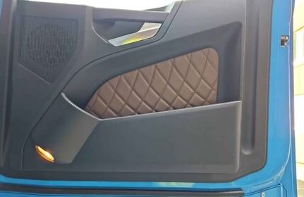 Die Türverkleidung kann in Glattleder oder Waffelleder bestellt werden. Die Farben schwarz glatt und braun mit Nahtfarbe in creme haben wir in der Regel auf Lager.