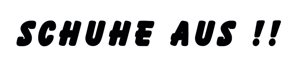 Schwarzer Aufkleber mit dem Text "SCHUHE AUS !!" auf weißem Hintergrund.