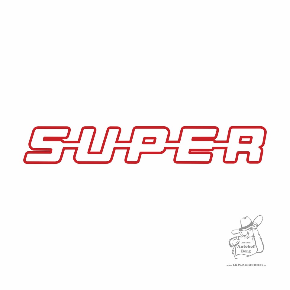 Roter Kontur-Aufkleber mit dem Schriftzug SUPER in Großbuchstaben.