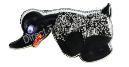 Schwarzer DTS PIN Rubber Duck im Plüsch-Stil mit blauem Auge und orangefarbenem Schnabel.