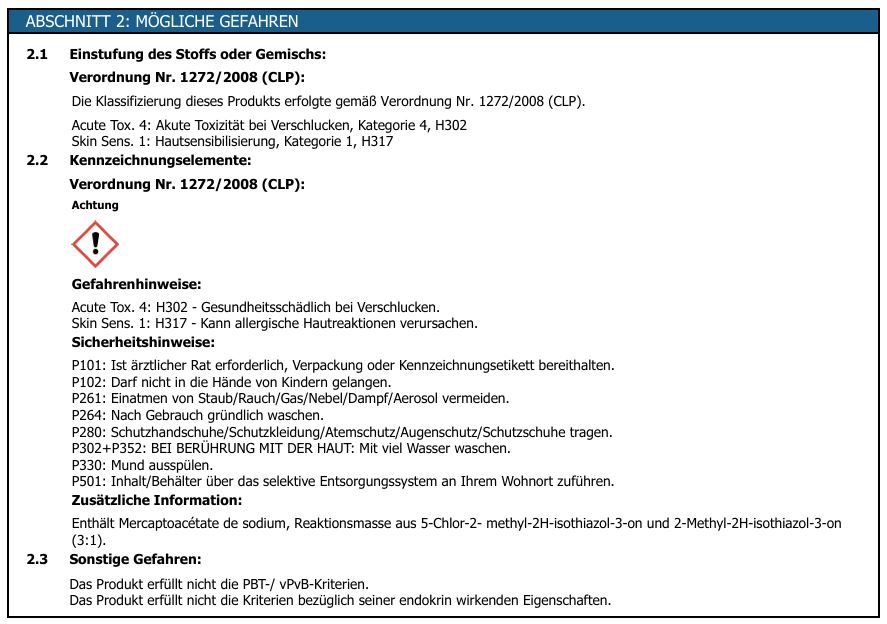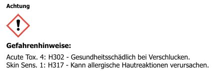 *Skin Sens. 1: H317 - Kann allergische Hautreaktionen verursachen.