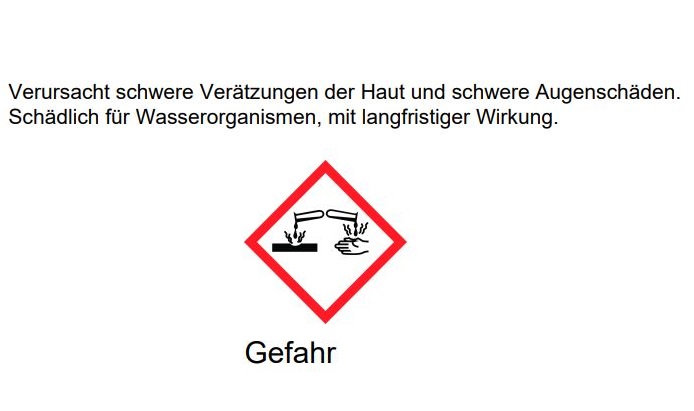 H314 Verursacht schwere Verätzungen der Haut und schwere Augenschäden.