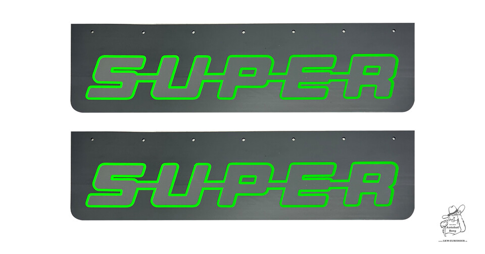 Der angegebene Preis bezieht sich auf die Schmutzfänger mit Beschriftung in zwei Farben.