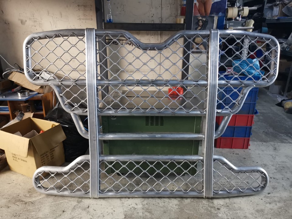 Die Verwendung der Bull Bar ohne Schutzbeschichtung ist nicht ratsam, da der Werkstoff extrem auf Umwelteinflüsse reagiert. Die Bull Bar wird im unbehandelten Zustand an Sie ausgeliefert. Während der Herstellung wird die gesamte Bull Bar abgeschliffen, wodurch Schleifspuren an der Oberfläche sichtbar sind.