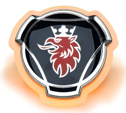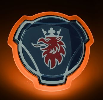 Lieferumfang beleuchtete Platte + Original Scania Emblem