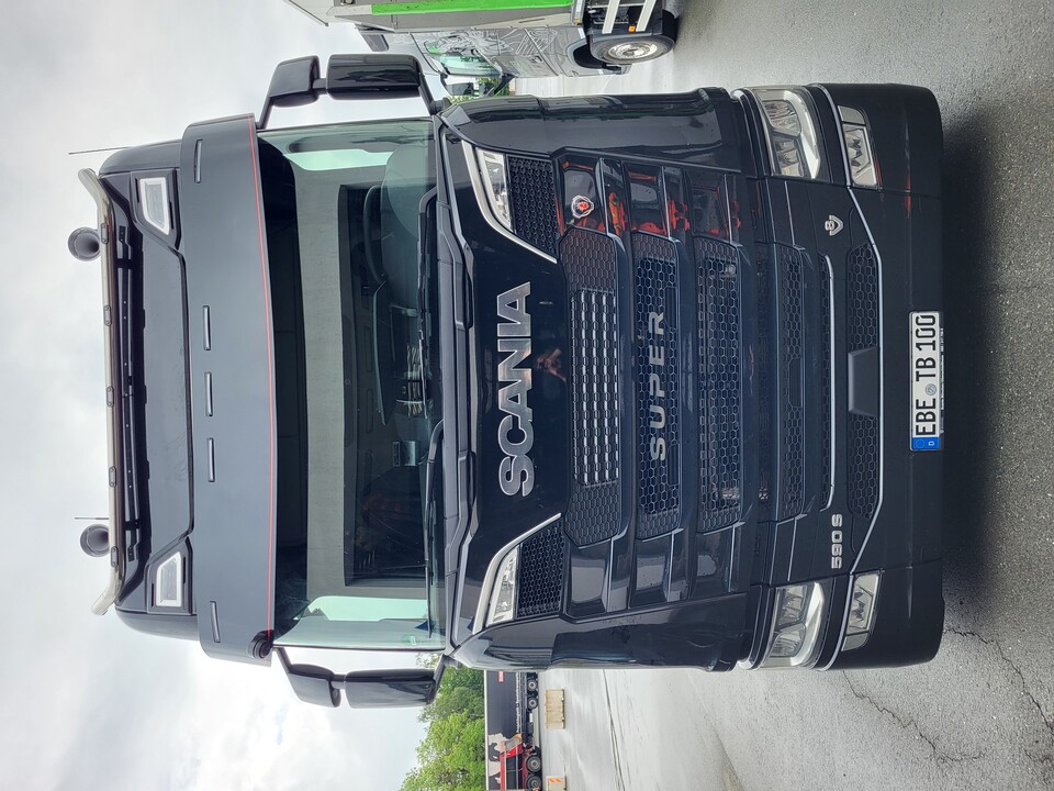 Hochwertig gefertigte Sonnenblende aus Alu. 40cm tief mit Ausschnitten für 5 originale Scania Begrenzungsleuchten der New Generation Serie.