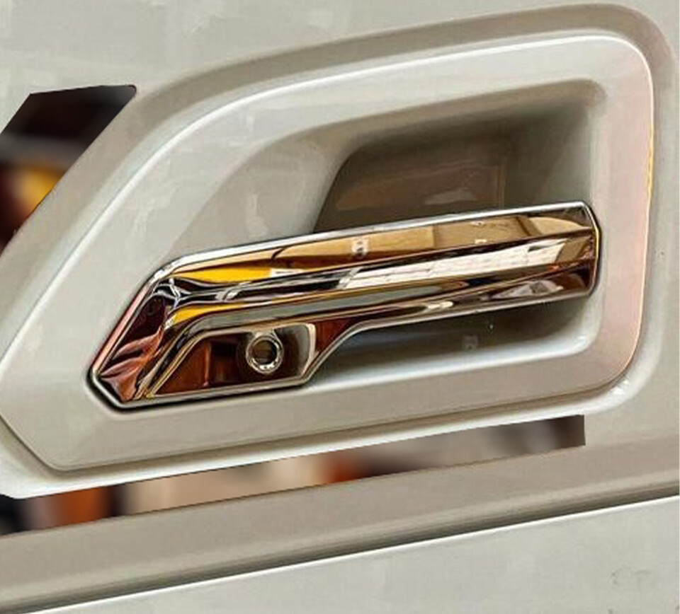 Türgriffhalter aus poliertem Edelstahl für DAF XG/XG+ mit Schlüsselöffnung, auf LKW-Tür montiert.