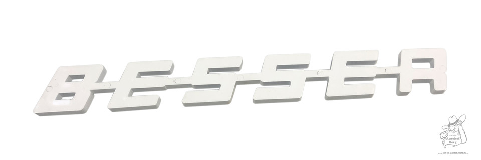 Weißes PVC-Schild mit dem Schriftzug "BESSER".