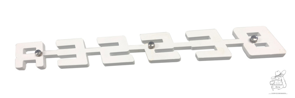 Weißes PVC-Schild mit dem Schriftzug "BESSER" und drei Schrauben.