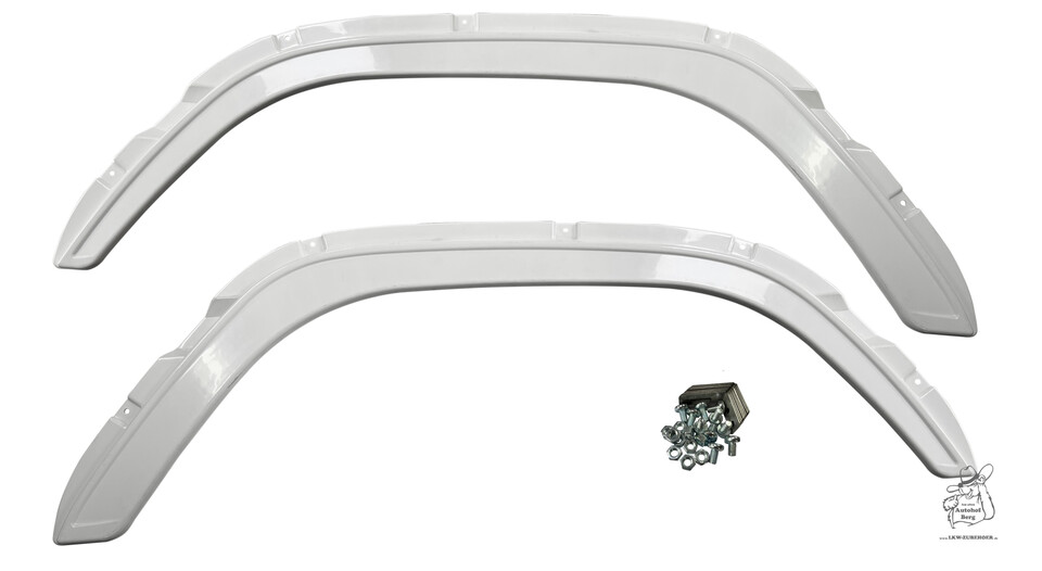 Ein Paar weiße Felips Kotflügelverkleinerungen aus ABS-Kunststoff, mit Schrauben und Montagewinkeln.