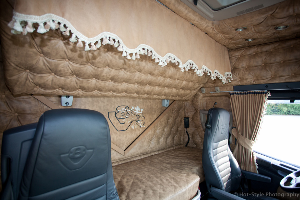 Nach Alkantara Art, die Innenraumbordüre ist doppelt genäht.