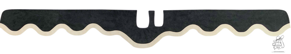Nach Alkantara Art wirkt immer sehr elegant. Ob wie hier ohne Bommel oder mit Bommel, auf jeden Fall aber den V-Schnitt in der Mitte. Die Bordüre ist doppelt genäht.