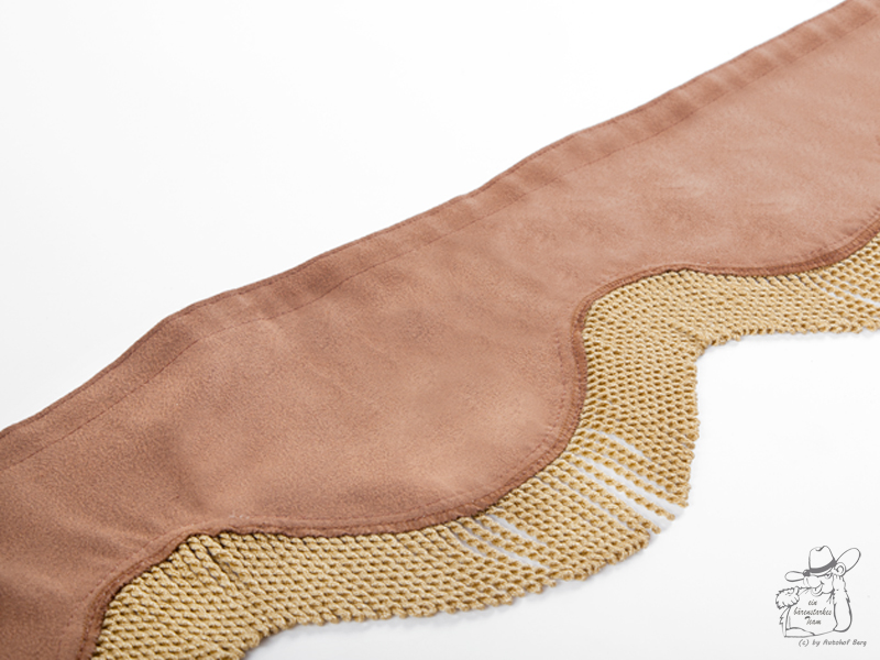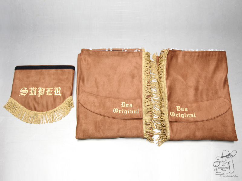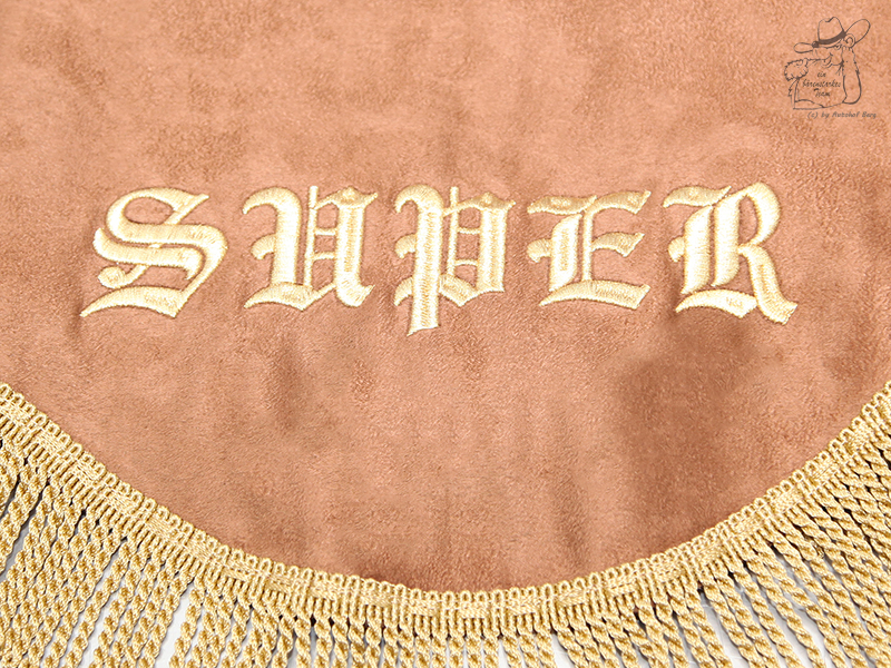 "Nach Alkantara Art" wirkt sehr elegant, hier mit goldenen dicken Fransen
