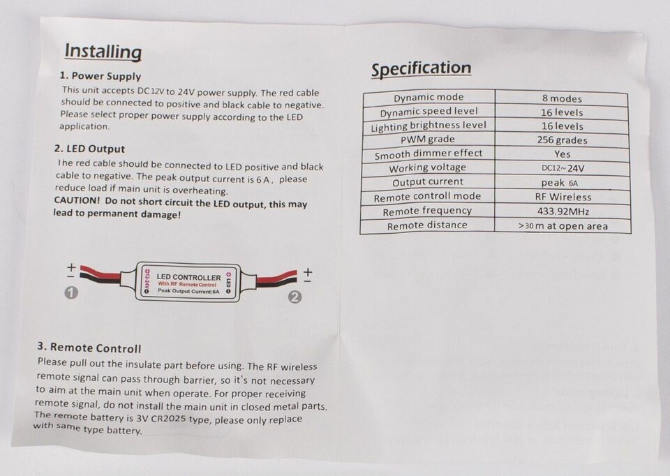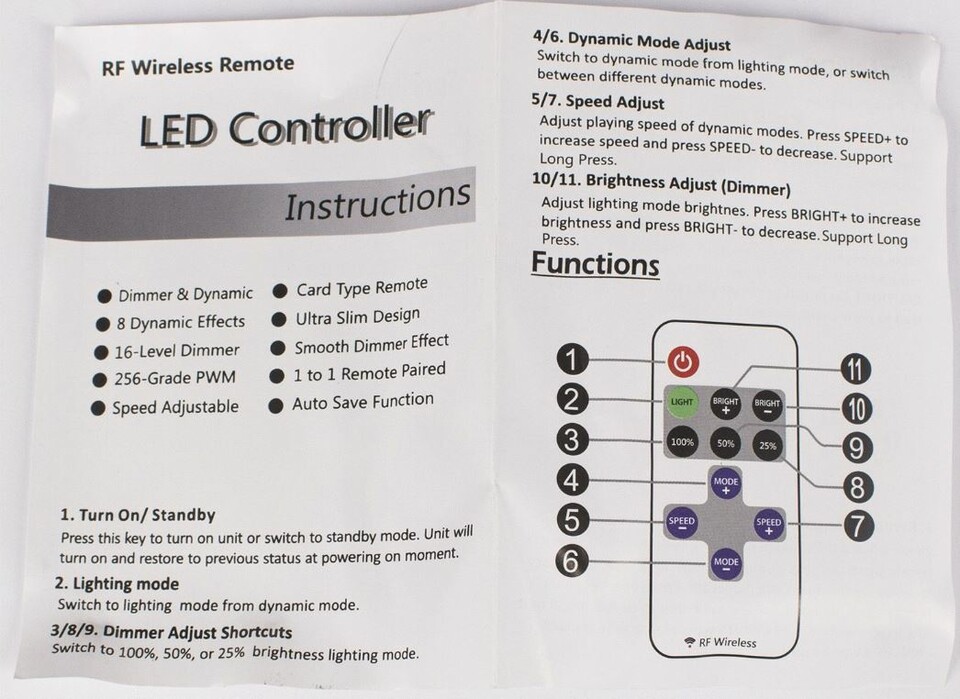 Dimmer mit kabelloser Fernbedienung zur Steuerung der LED-Beleuchtung. Die Reichweite der Fernbedienung beträgt im freien Gelände ca. 20 m.