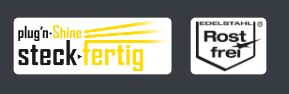 ✓ Edelstahl hochglanzverchromt (Rohre und Schellen)