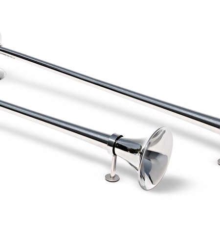 Es empfiehlt sich nicht, zwei gleichlange Hörner zu kombinieren. Sie klingen wie eins. Wenn Sie ein Horn links und ein Horn rechts montieren wollen, setzen Sie diese vorn auf eine Höhe – dann fällt der Längenunterschied nicht auf. Für den harmonischen Zweiklang sind die Hörner aufeinander abgestimmt.