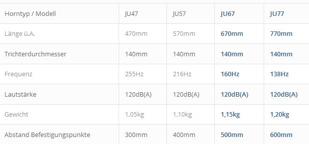 1x Drucklufthorn JU77 (montagefertig inkl. Trichterstützen)
