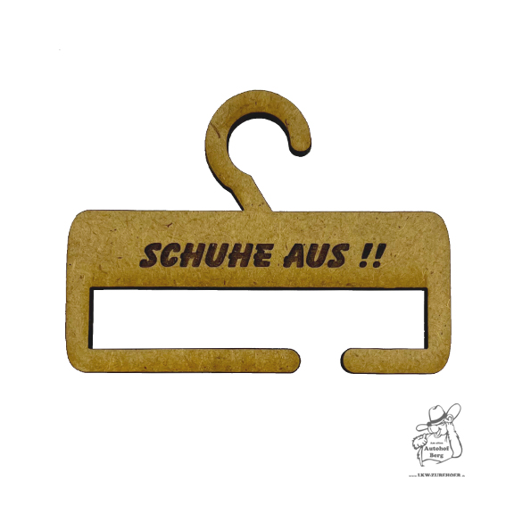 Minischalbügel aus Holz mit Schriftzug "SCHUHE AUS !!"