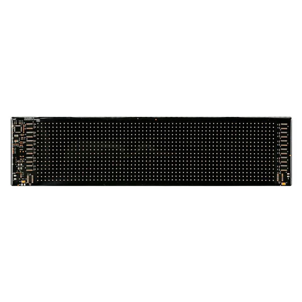 Schwarzes Smart-LED Dekoschild mit unbeleuchteter Punktmatrix und seitlichen elektronischen Komponenten.