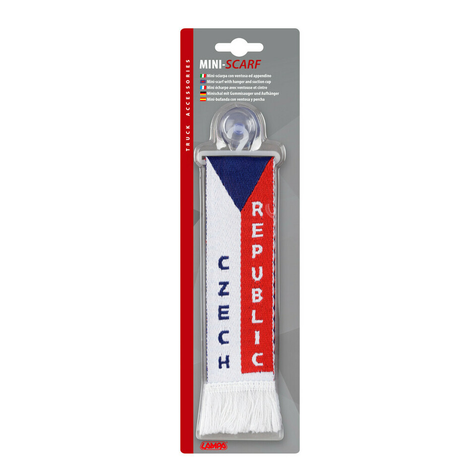 Minischal mit tschechischer Flagge in Weiß, Blau, Rot. Mit Saugnapf und Bügel. Aufschrift: CZECH REPUBLIC.