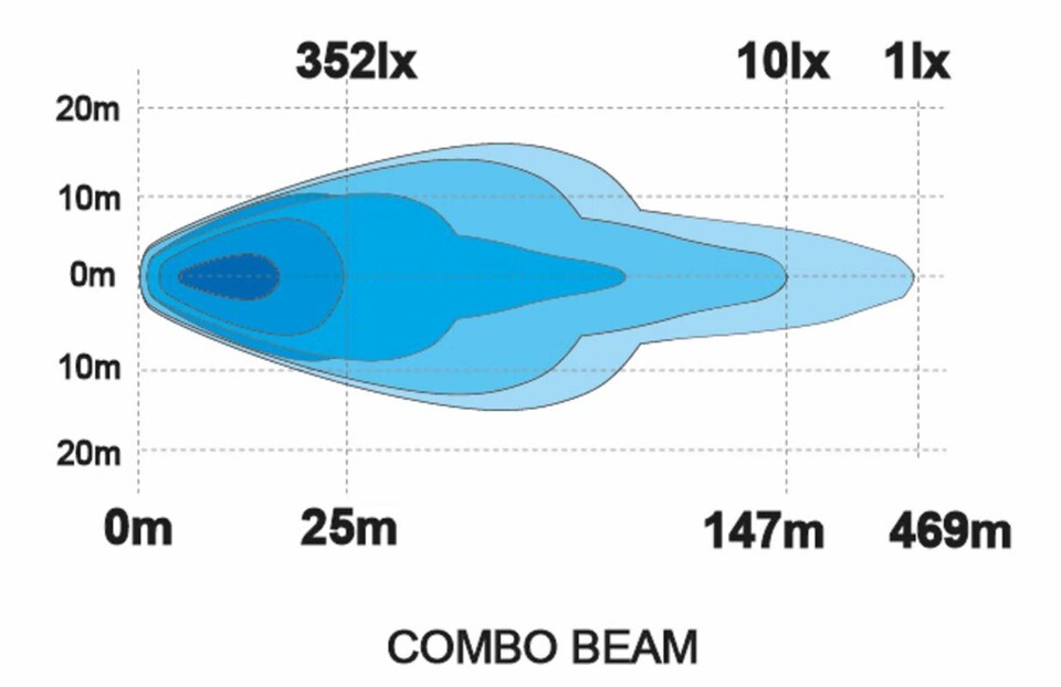Reichweite: 938 m (0,25 Lux), 469 m (1 Lux)