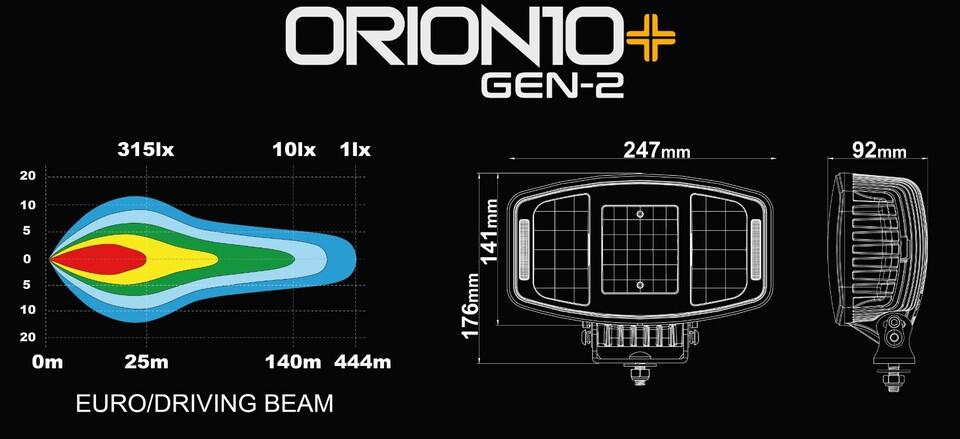 Reichweite: 850 m (0,25 Lux), 444 m (1 Lux)