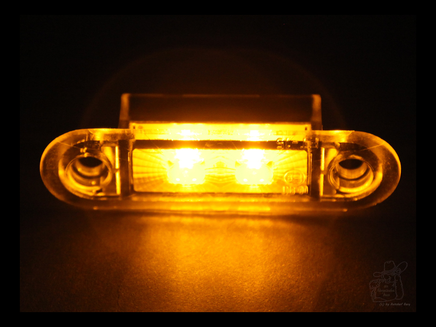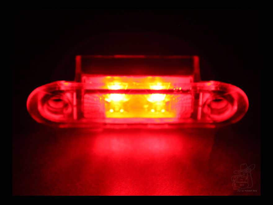 LED Seitenmarkierungsleuchte. Extrem lange Lebensdauer (> 50.000 Stunden).Hergestellt nach höchsten Qualitätsnormen.Spannung : 12 bis 30V DC - Nicht polarisiert. Extrem geringer Stromverbrauch bei einer Spannung von 12V(0,04A)/0,5W; bei Spannung von 24V(0,04A)/1W. Betriebstemperatur von -40°C bis +100°C.Kabelanschluss