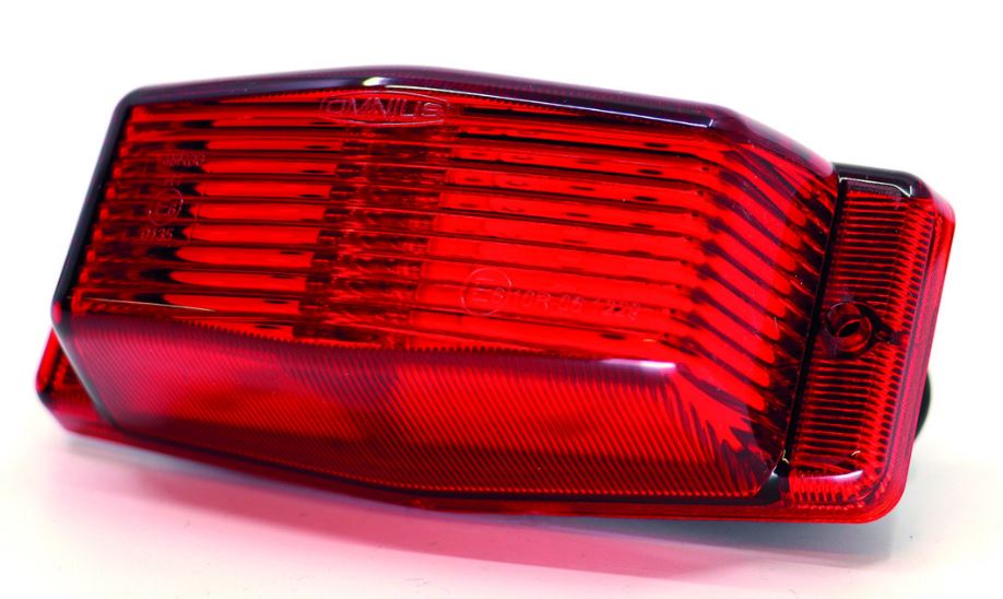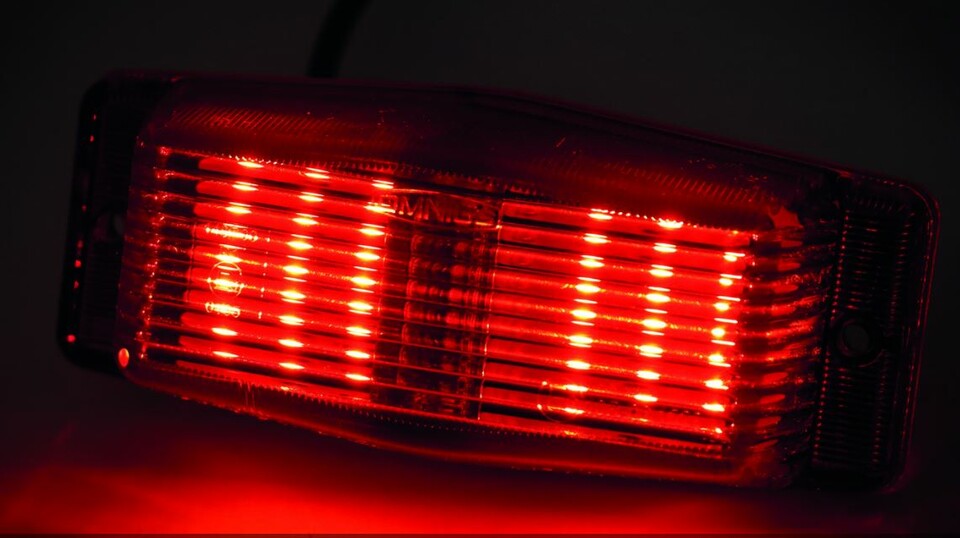 Rote Omnius LED Double Burner Lampe aus PC-Material für LKW-Kühlergrill mit gerippter Oberfläche.