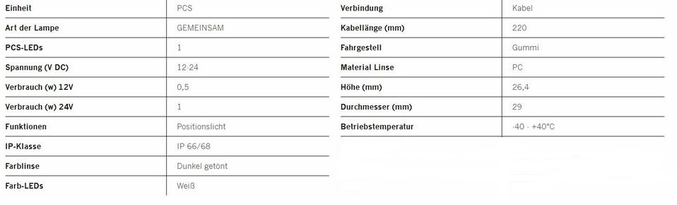 Hergestellt aus starkem Gummi und Polycarbonat sowie IP-Schutzart IP66/68, stellt es sicher, dass Sie ein Produkt erhalten, dem Sie vertrauen können. Es eignet sich besonders für die Montage an Fahrzeugbögen. Eine Gummidichtung zur Montage an einem Bug ist im Lieferumfang enthalten. Dank des geringen Stromverbrauchs von 1 W (12-24 V) und eines 220-mm-Kabels können Sie so viele installieren, wie Sie möchten.