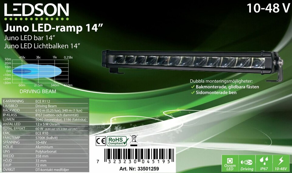 Die geringe Bauhöhe macht diesen Lichtbalken von Ledson zu einer der am einfachsten zu platzierenden Lichtbalken auf dem Markt! Aus der Ferne ist es kaum sichtbar, aber je näher man kommt, desto deutlicher wird sein ausgesprochen aggressives und modernes Design. Der Lichtbalken Zusatzleuchte nach ECE R112