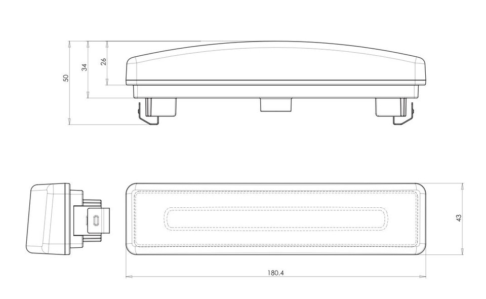 Technische Zeichnung der LED Positionslampe mit Draufsicht und Seitenansicht.