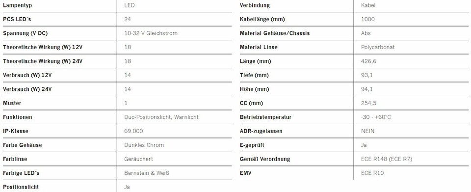 Funktionen: Positionslicht in weiß und orange, Warnlicht