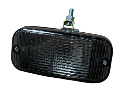 Tagfahrlicht Schwedenleuchte Talmu in Smoke, rechteckig mit geripptem Glas und Montagebügel.